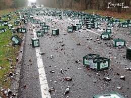 Some think beer flows through the streets of Canada , but on a California highway Monday that was literally the case.Several lanes of Interstate 80 were blocked during the morning rush hour after a rig loaded with 35,000 lbs. of Bud Light and Bud Light Lime flipped on its side, reports Sacramento's CBS13 TV.Crews off-loaded the cases as beer leaked onto the roadway from bottles that had broken inside the truck.No injuries were reported, according to CBS13, but it would take several tow trucks to upright the 53-foot rig.